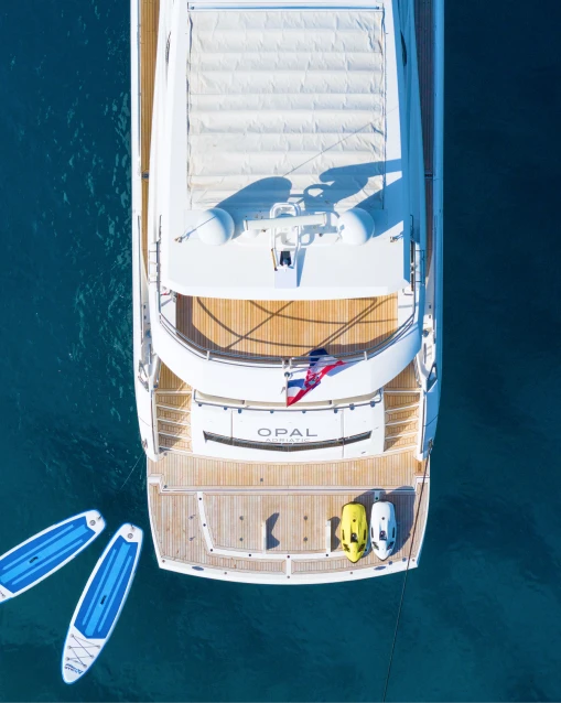 The yacht carries a Williams 385 Turbojet tender for shore excursions and cove-hopping, paddleboards, snorkelling equipment, and sea scooters. If there is something specific you would like on board, let us know during the planning stage and we will do our best to arrange it.