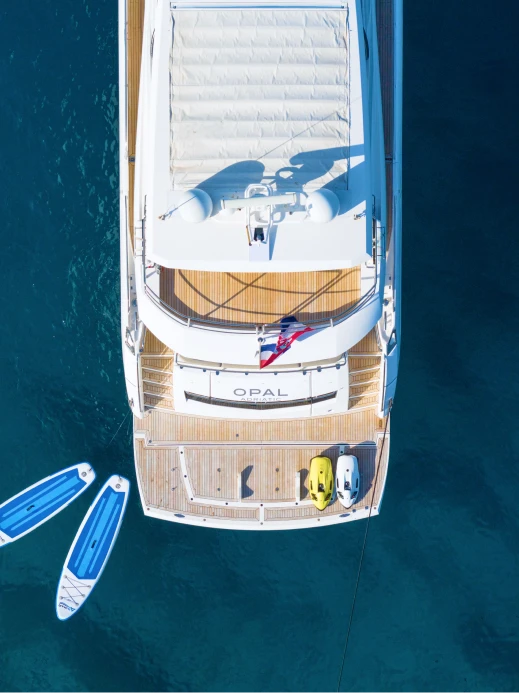 The yacht carries a Williams 385 Turbojet tender for shore excursions and cove-hopping, paddleboards, snorkelling equipment, and sea scooters. If there is something specific you would like on board, let us know during the planning stage and we will do our best to arrange it.
