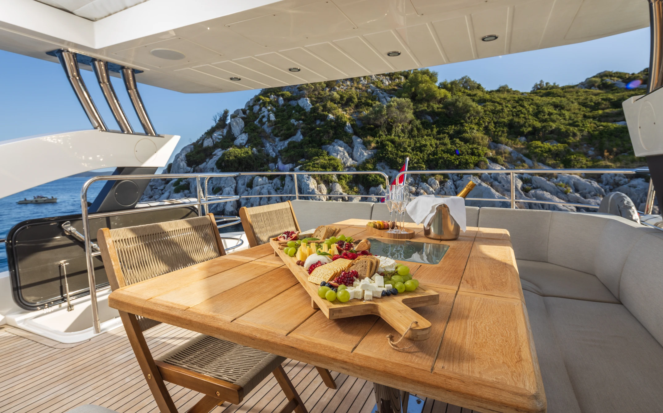 The yacht is equipped with Starlink satellite internet, which provides reliable connectivity even while cruising between islands. Strong enough for video calls, light enough that you might forget to check.